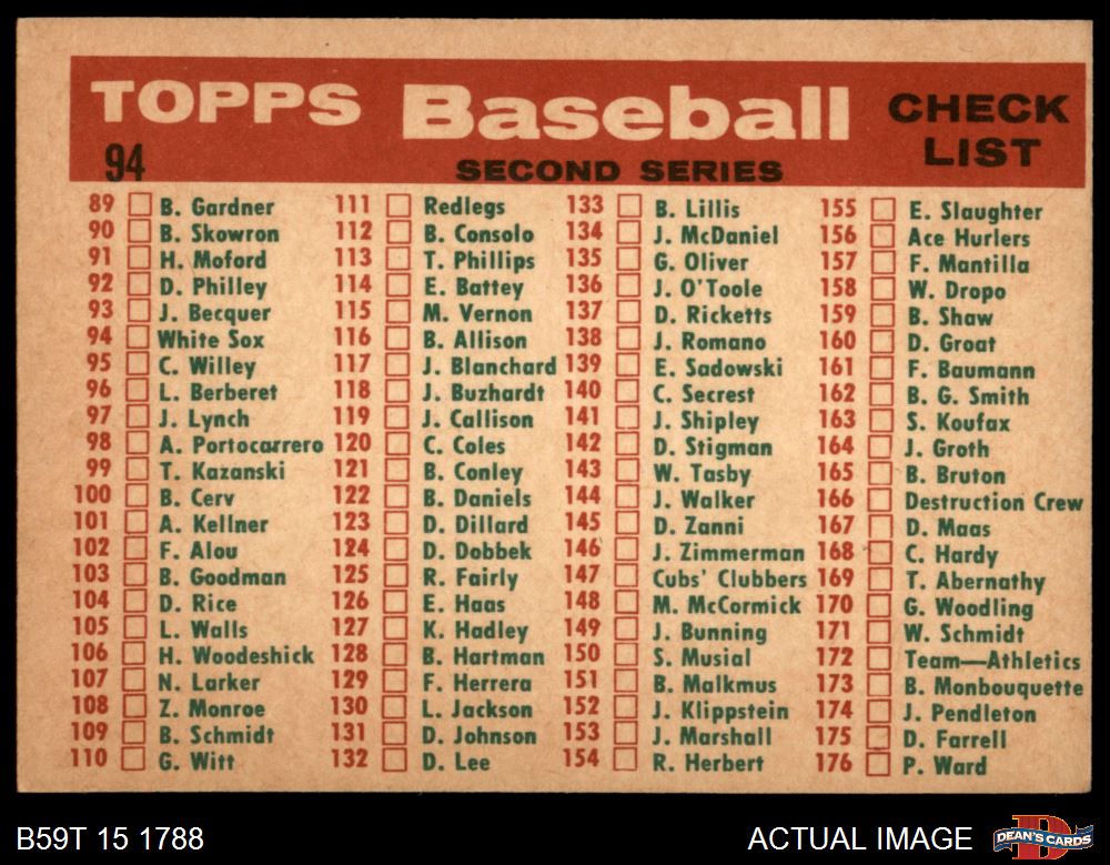 1959 Topps #94 White Sox Team Checklist 4 - VG/EX