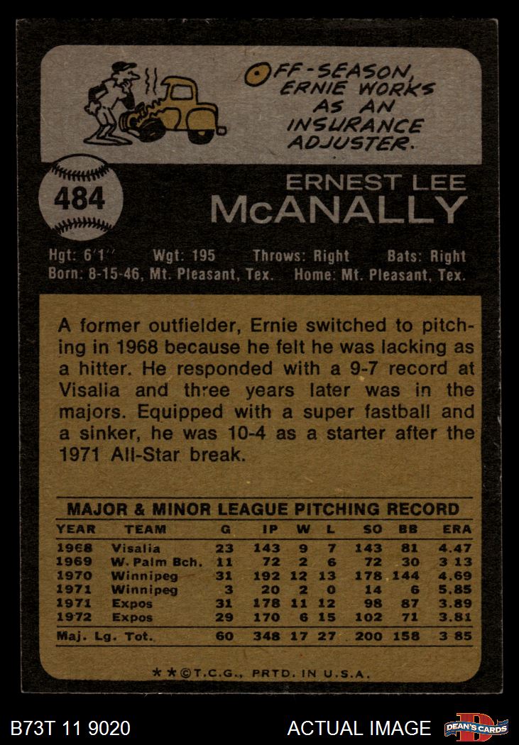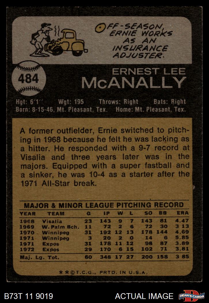 1973 Topps #484 Ernie McAnally 4 - VG/EX