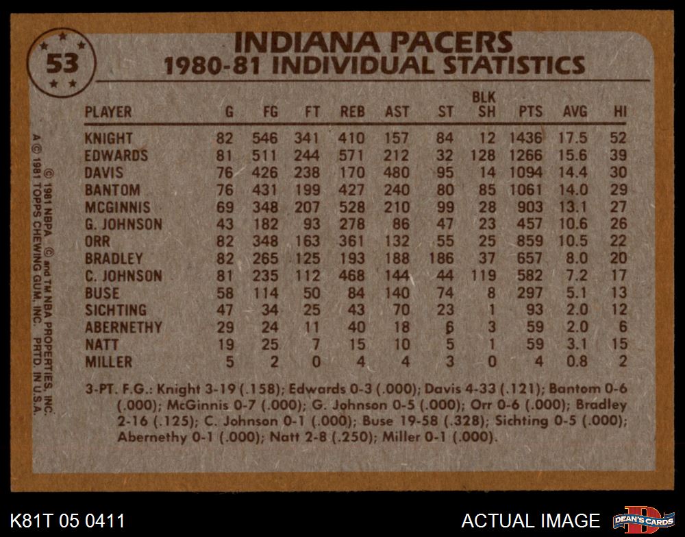 1981 Topps #53 - Billy Knight / James Edwards / Johnny Davis Pacers Leaders 8 - NM/MT