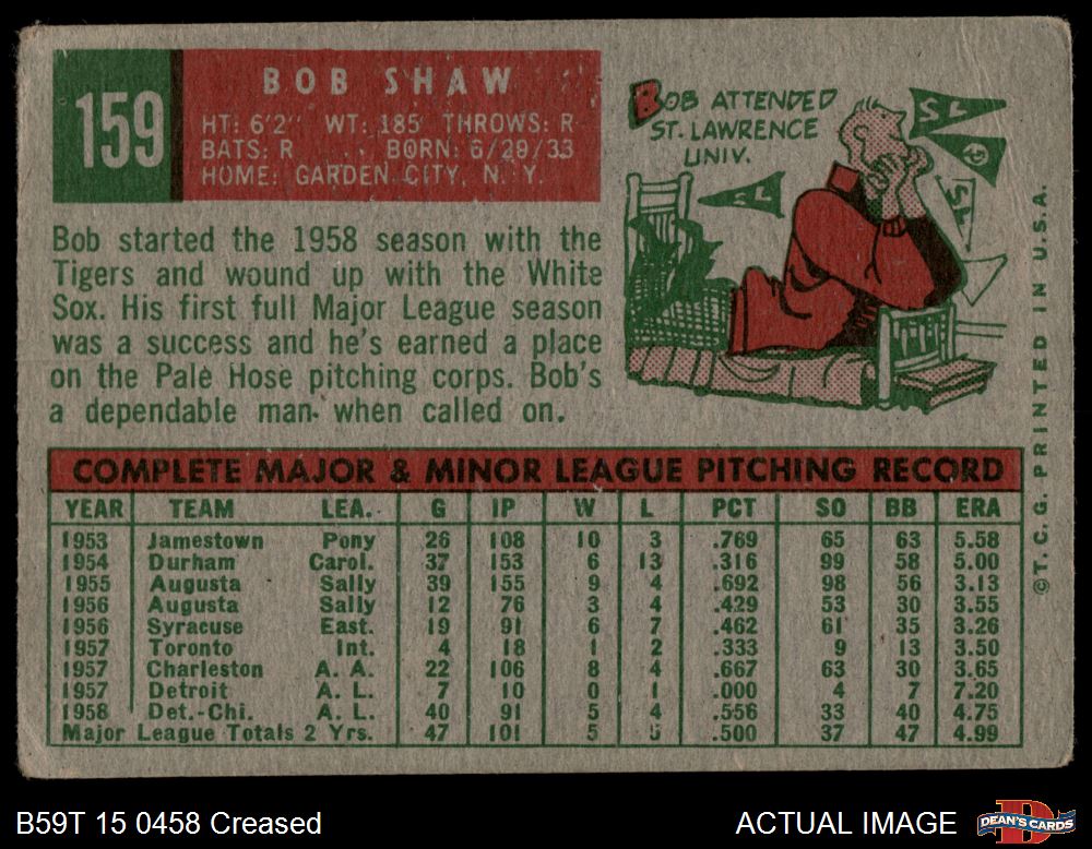 1959 Topps #159 Bob Shaw 2 - GOOD