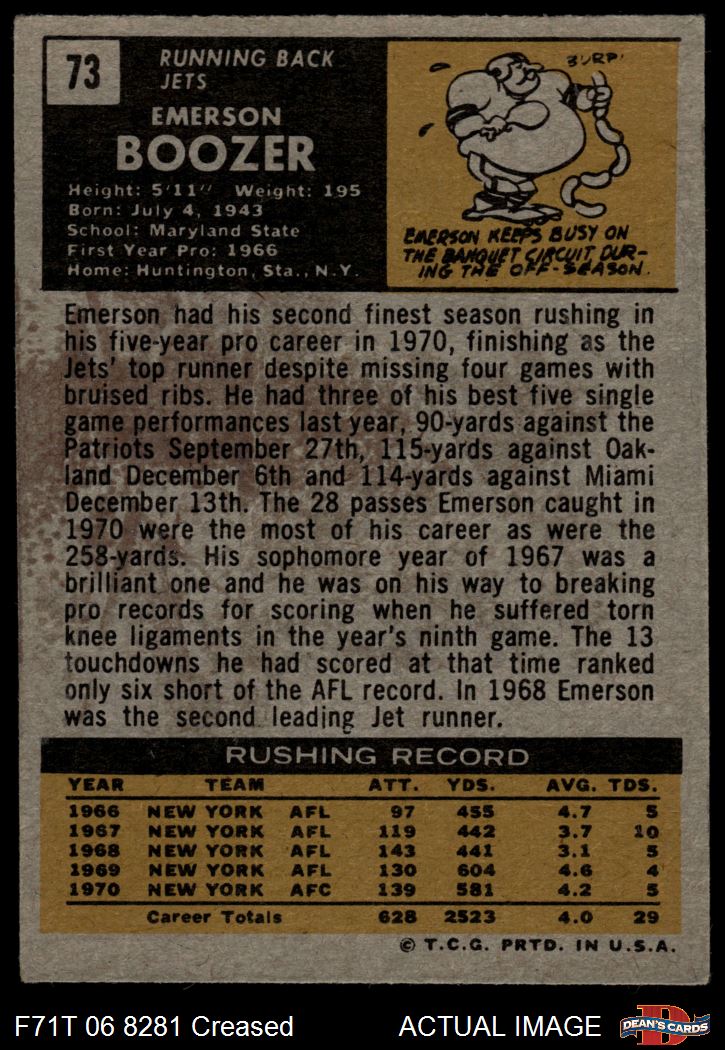 1971 Topps #73 Emerson Boozer Front Thumbnail