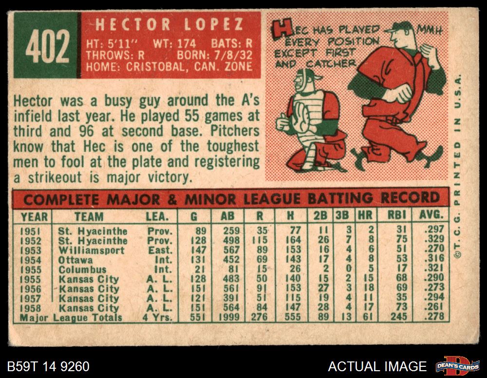 1959 Topps #402 Hector Lopez 1.5 - FAIR
