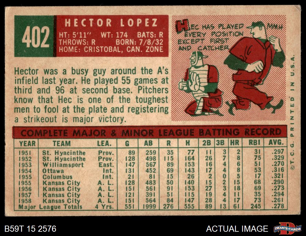 1959 Topps #402 Hector Lopez