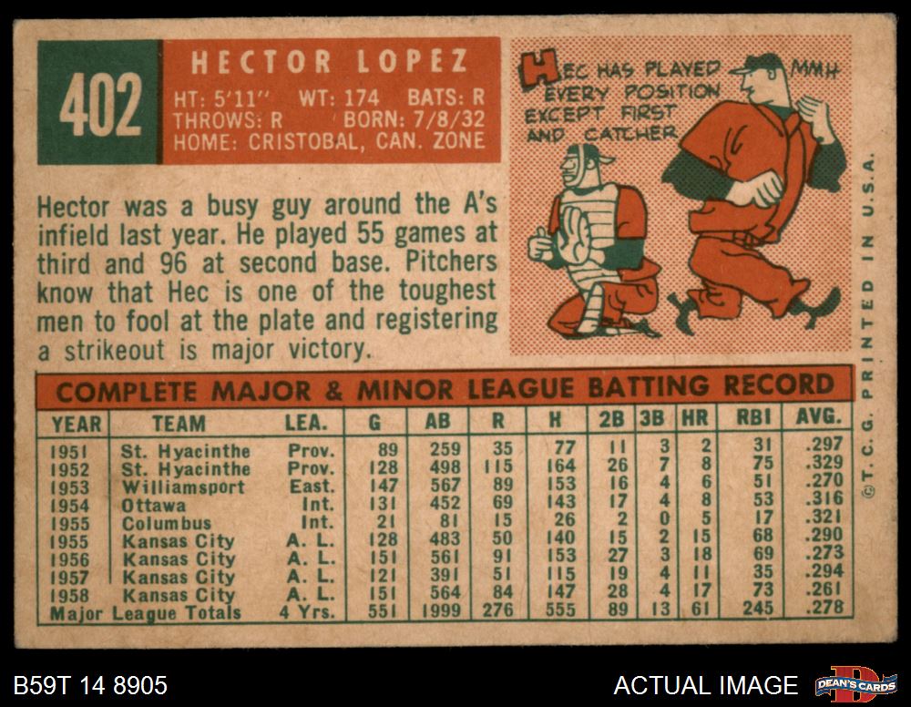1959 Topps #402 Hector Lopez 2.5 - GD+