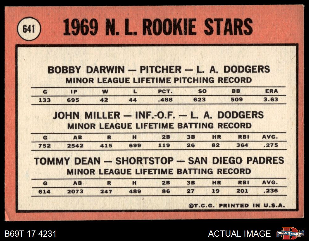 1969 Topps #641 - Bobby Darwin / Tommy Dean / John Miller NL Rookies 4 - VG/EX