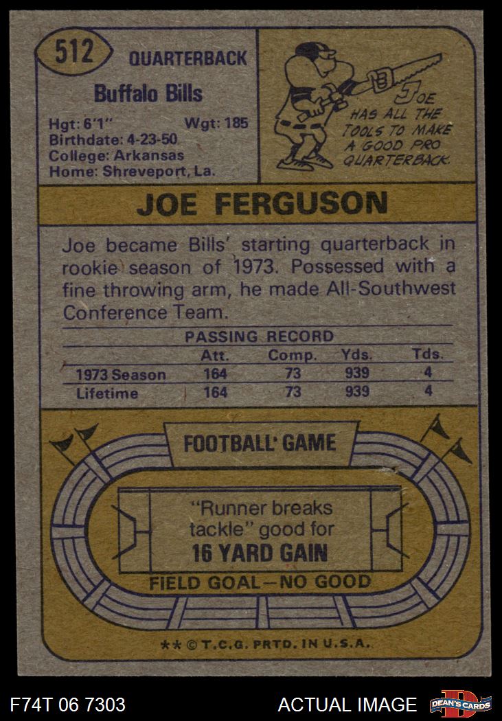 1974 Topps #512 Joe Ferguson 6 - EX/MT