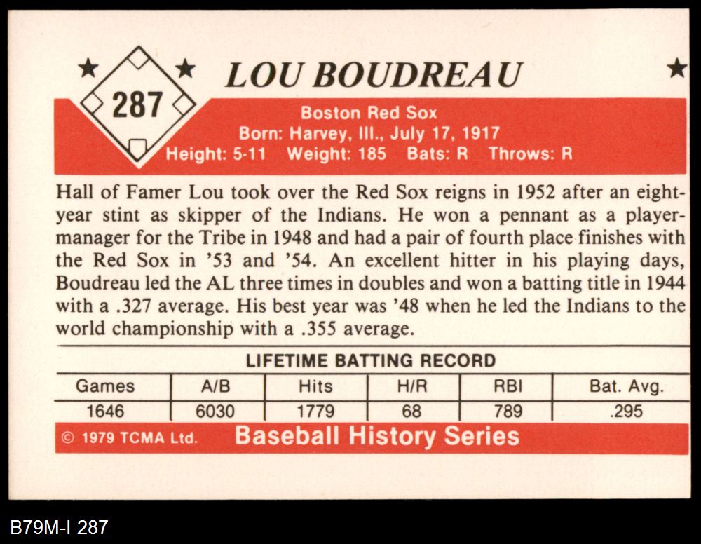 1979 TCMA The 1950's #287 Lou Boudreau
