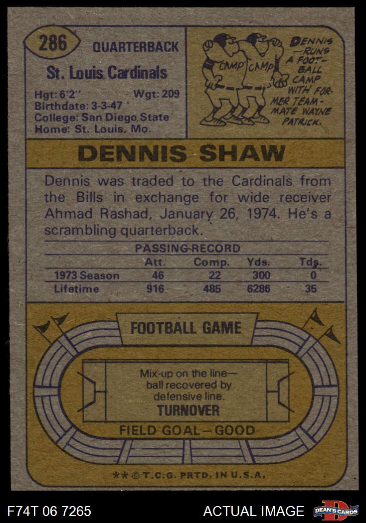 1974 Topps Football Cards (12,394 available)1974 Topps Cardinals-FB (646 available)