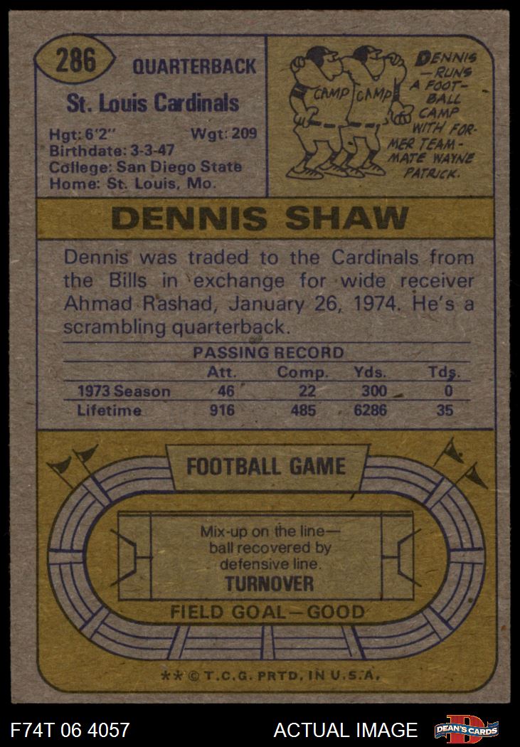 1974 Topps #286 Dennis Shaw 4 - VG/EX