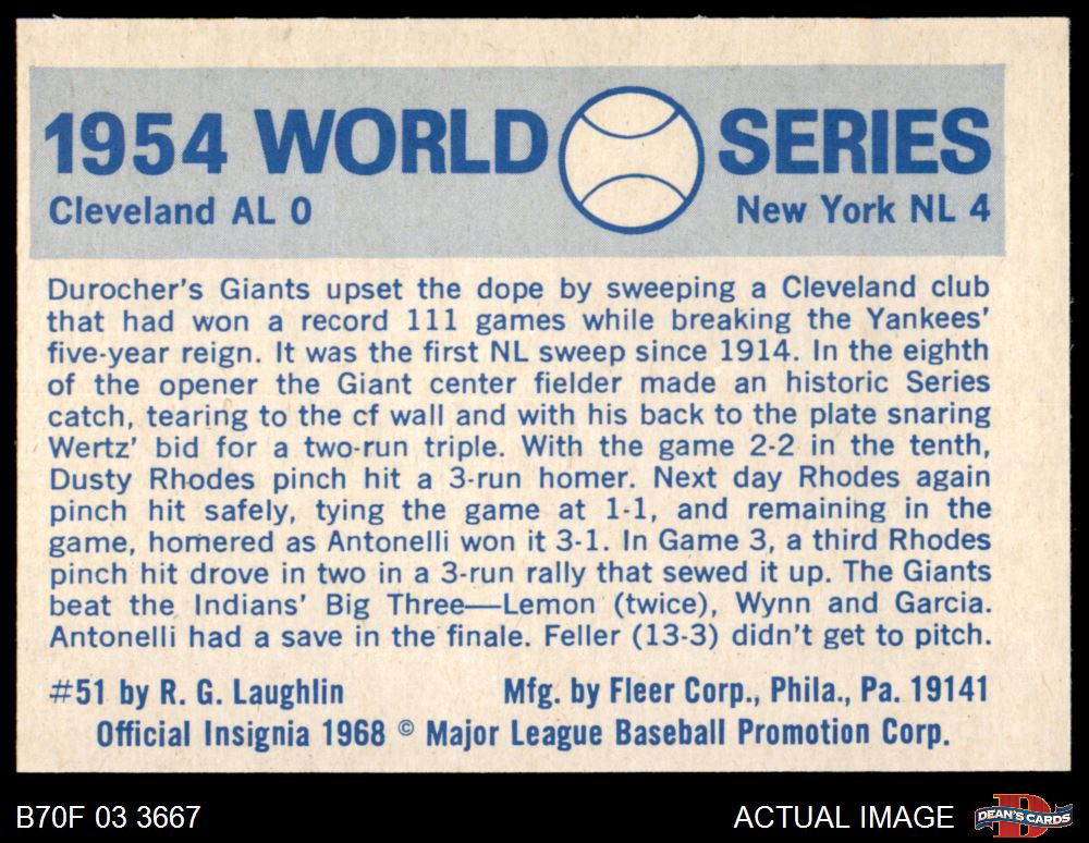 1970 Fleer World Series #51 1954 Giants vs. Indians