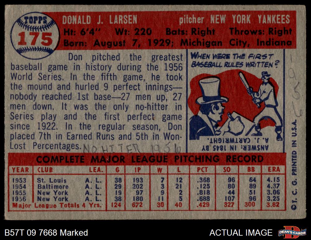 1957 Topps #175 Don Larsen