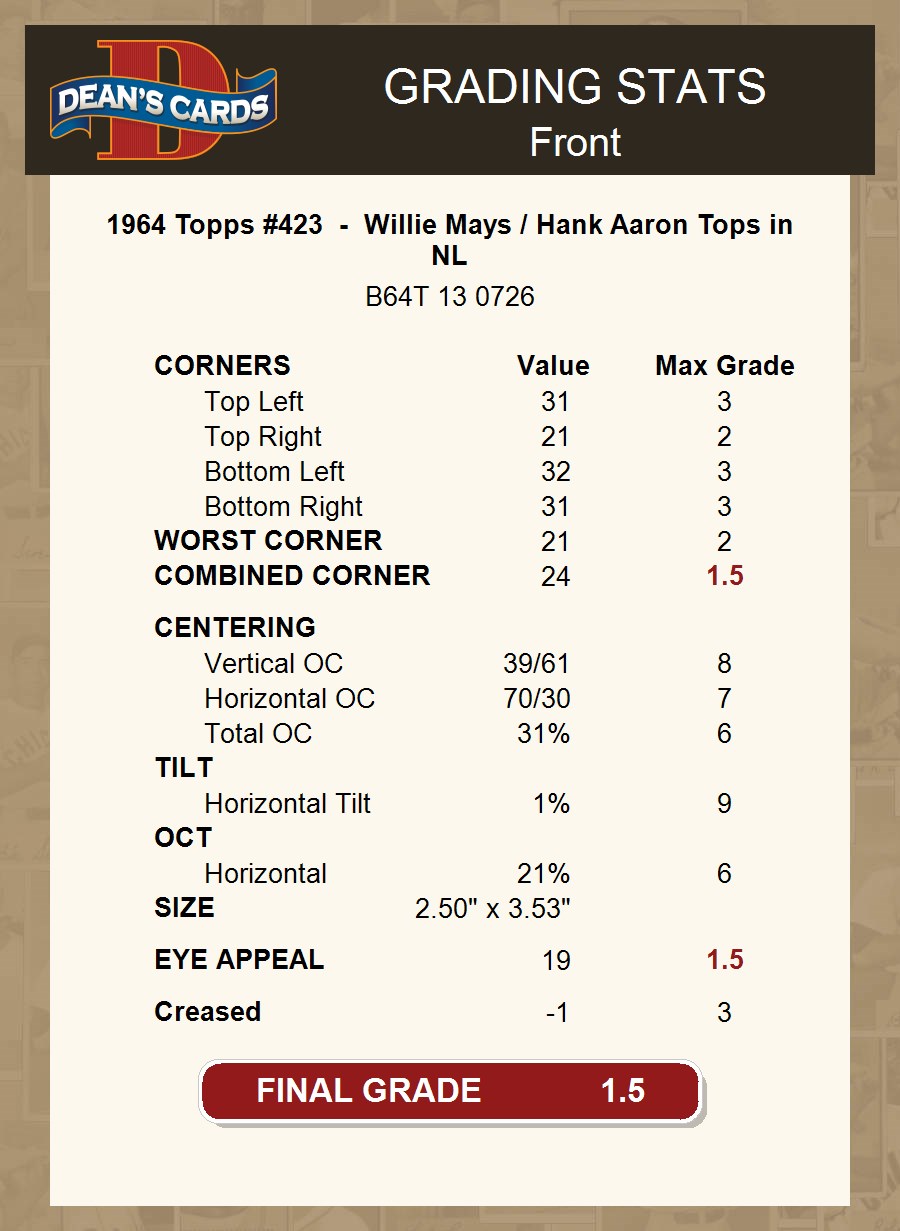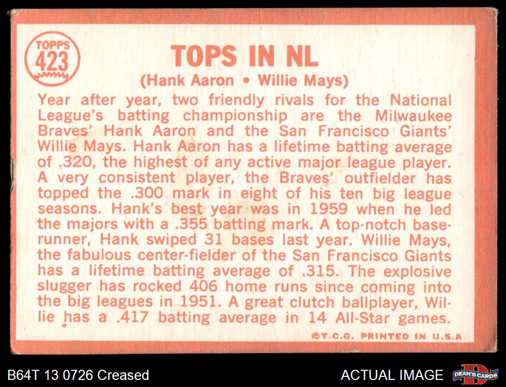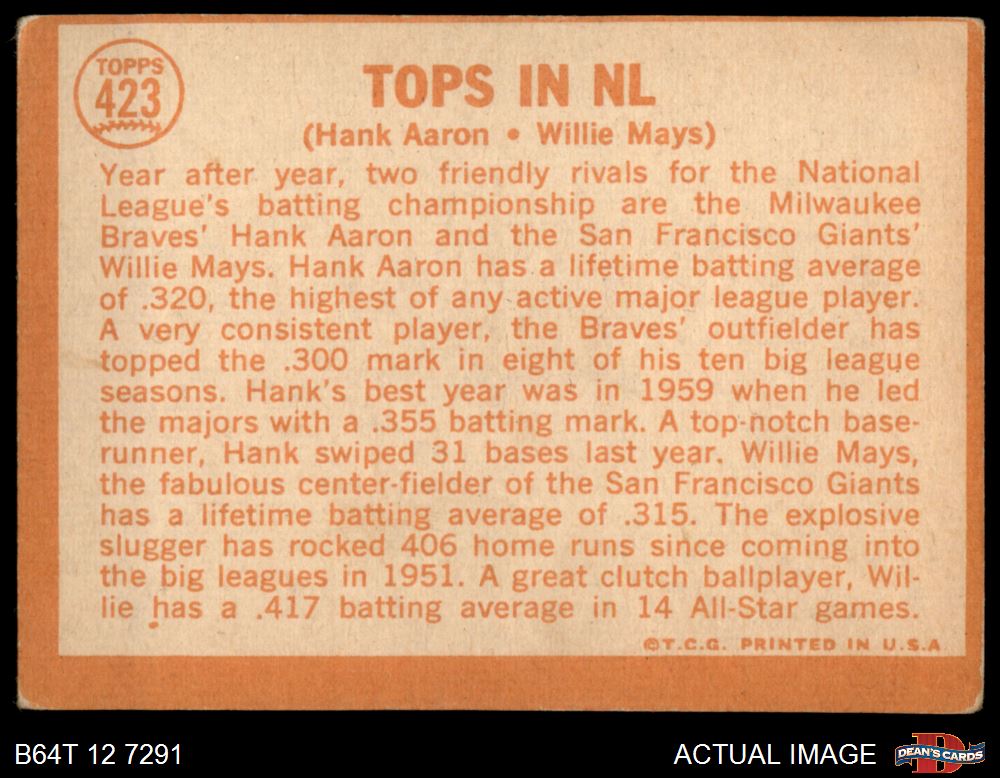 1964 Topps #423 - Willie Mays / Hank Aaron Tops in NL 1.5 - FAIR