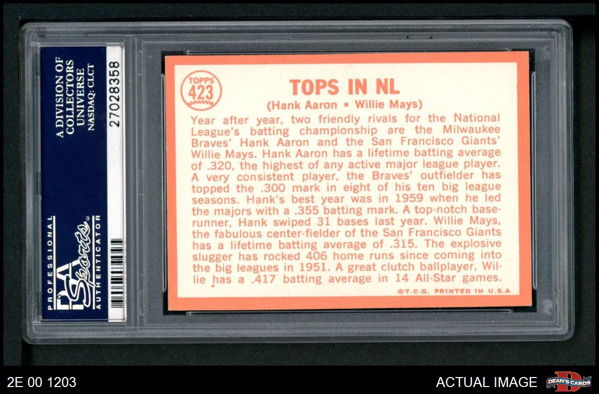 1964 Topps #423 - Willie Mays / Hank Aaron Tops in NL PSA 7 - NM