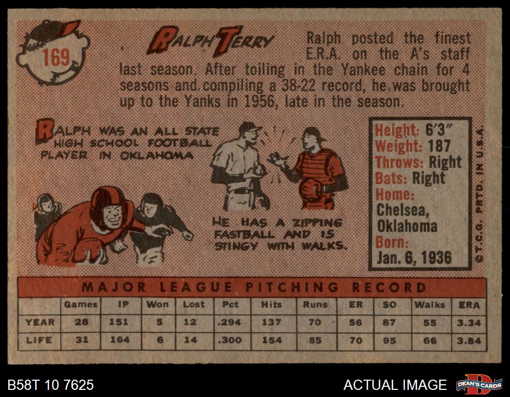 1958 Topps #169 Ralph Terry 6.5 - EX/MT+