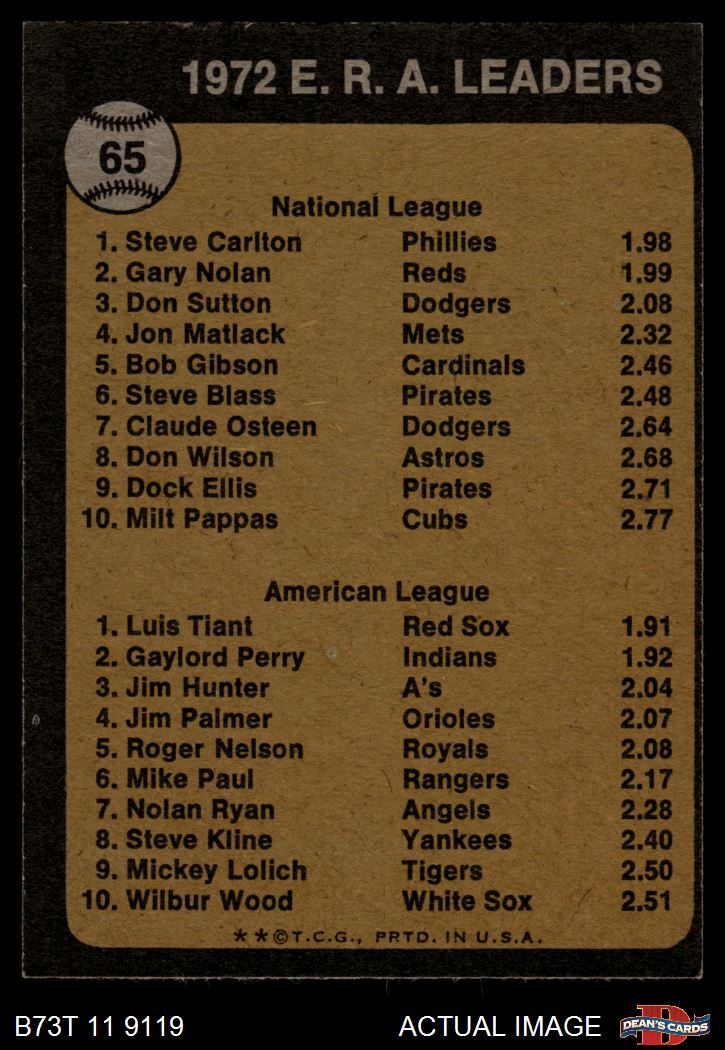 1973 Topps #65 - Steve Carlton / Luis Tiant ERA Leaders 8.5 - NM/MT+
