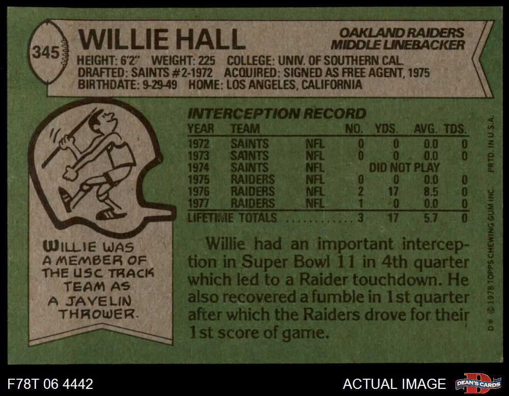 1978 Topps #345 Willie Hall 5 - EX