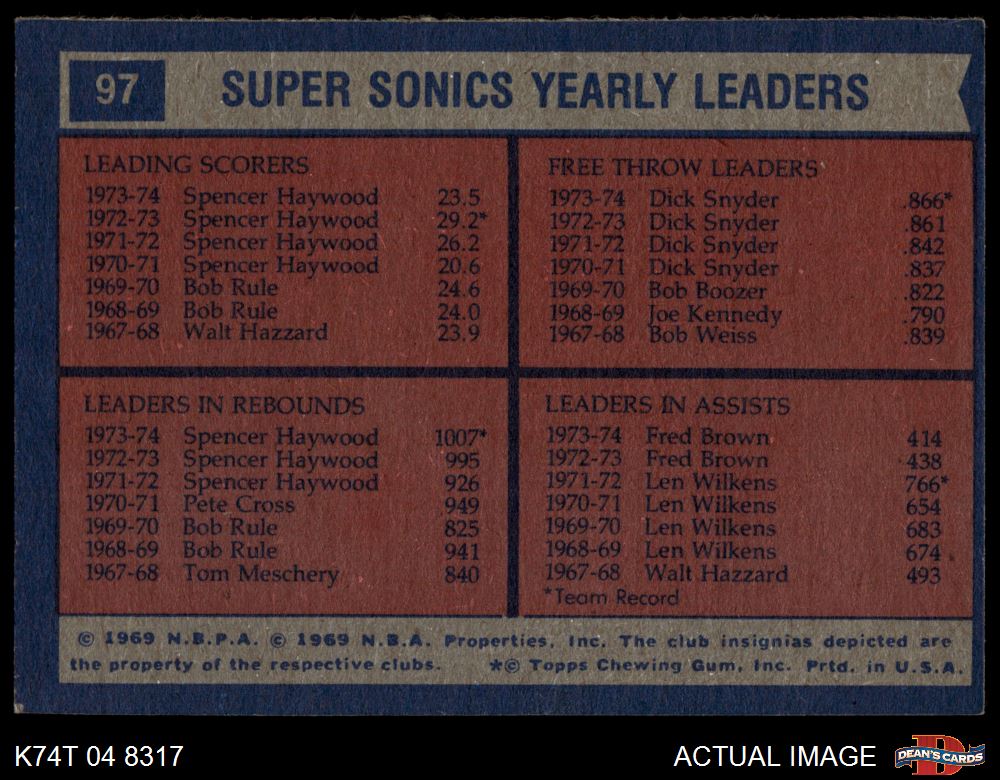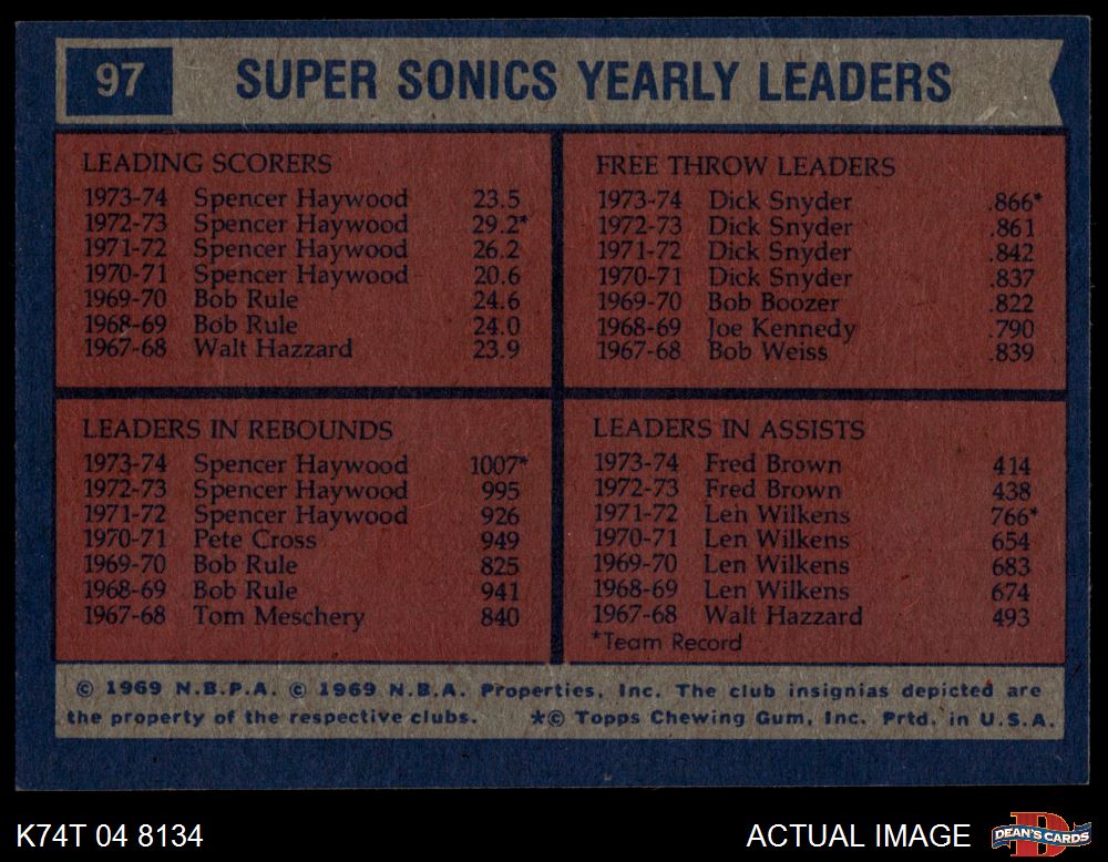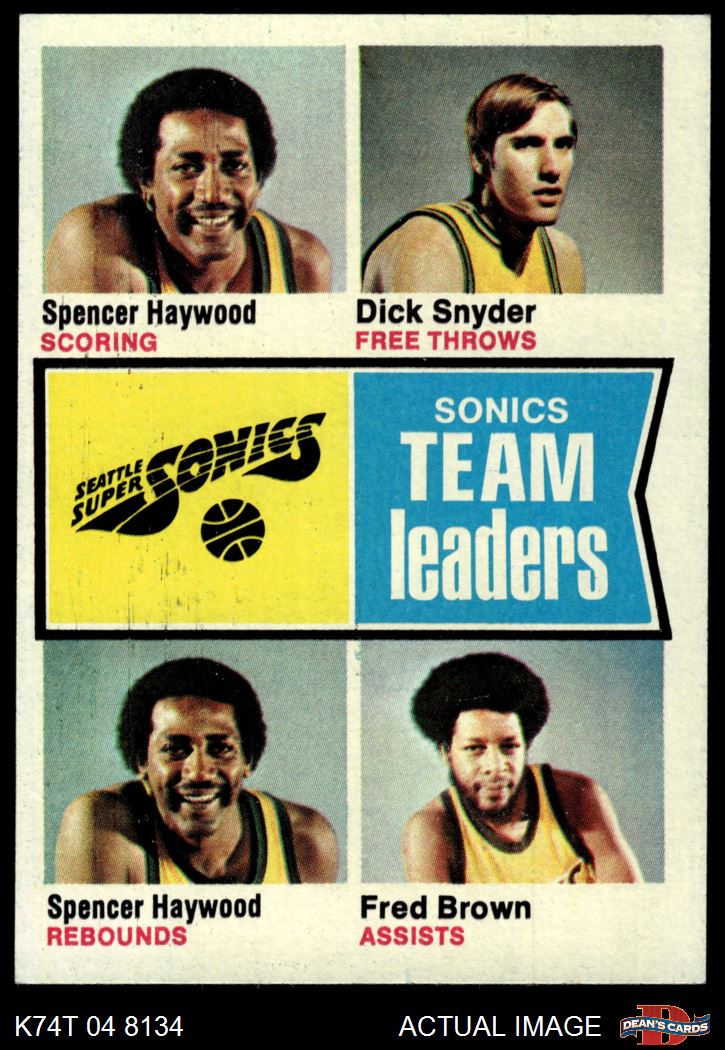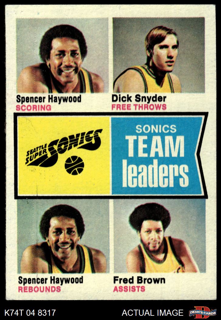 1974 Topps #97 - Dick Snyder / Spencer Haywood / Fred Brown Supersonics Leaders 4 - VG/EX