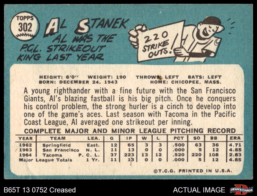 1965 Topps #302 Al Stanek Front Thumbnail