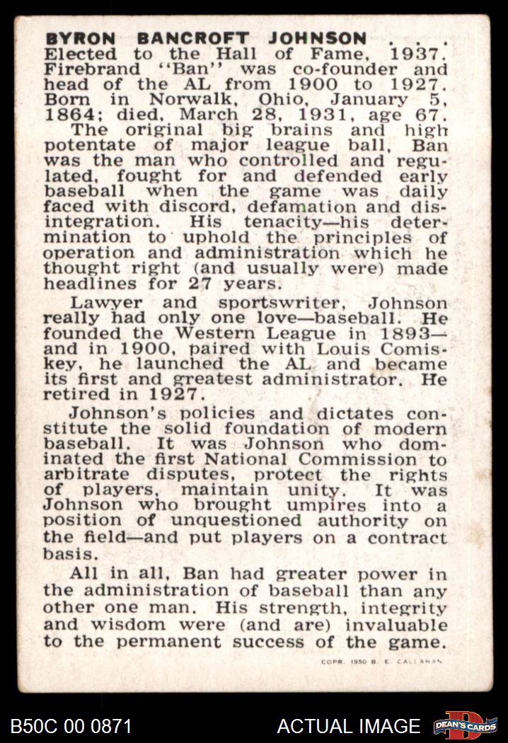 1950 Callahan Hall of Fame Ban Johnson 6.5 - EX/MT+