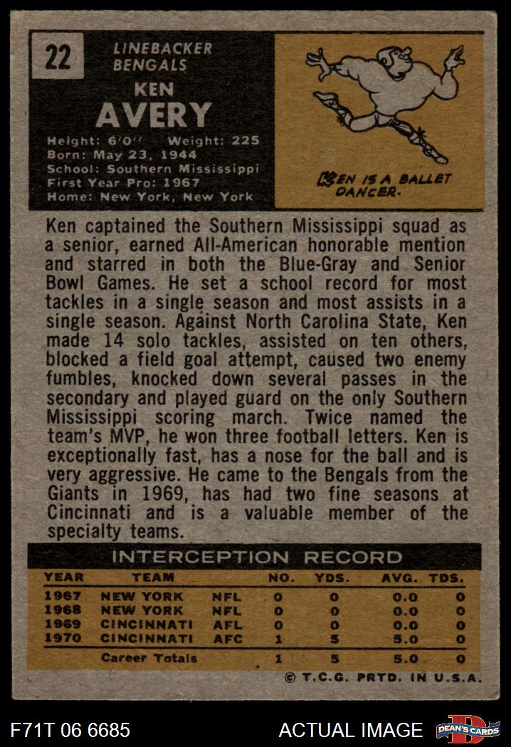 1971 Topps #22 Ken Avery 5 - EX
