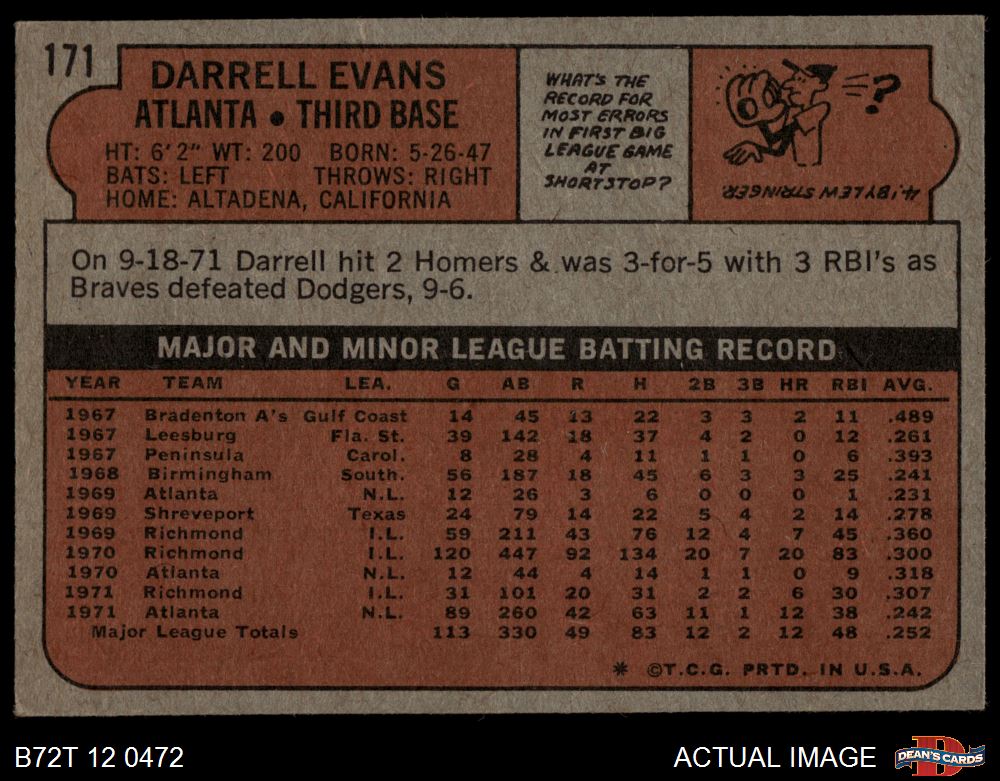 1972 Topps #171 Darrell Evans 2 - GOOD