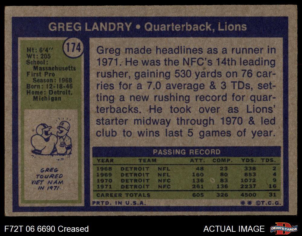 1972 Topps #174 Greg Landry Front Thumbnail