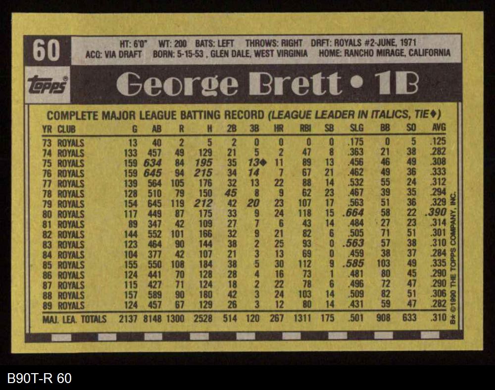 1990 Topps #60 George Brett 8 - NM/MT