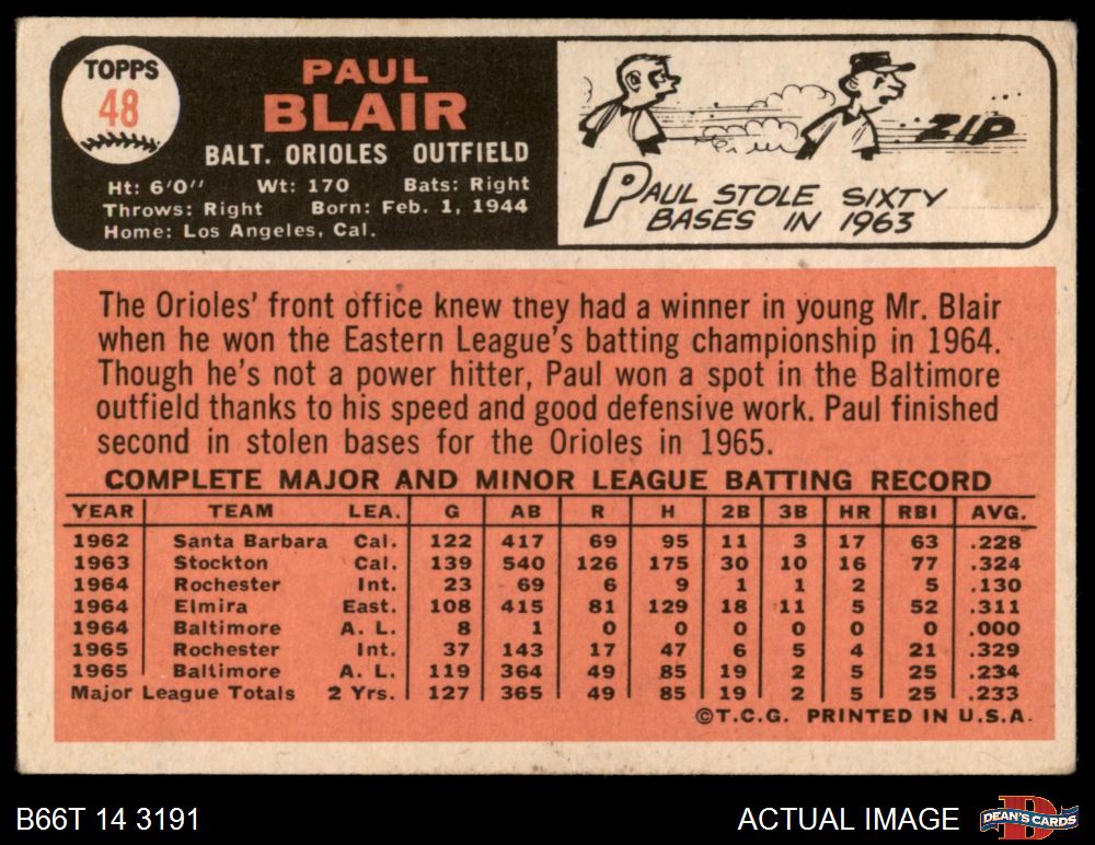 1966 Topps #48 Paul Blair 3 - VG