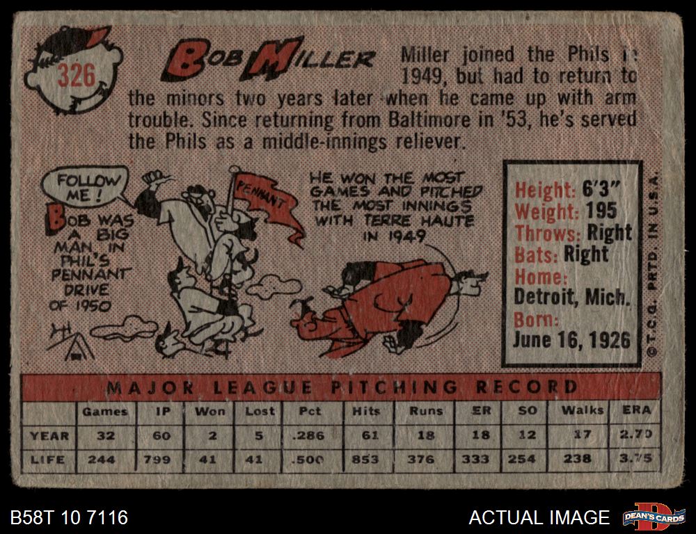 1958 Topps #326 Bob Miller 1 - POOR