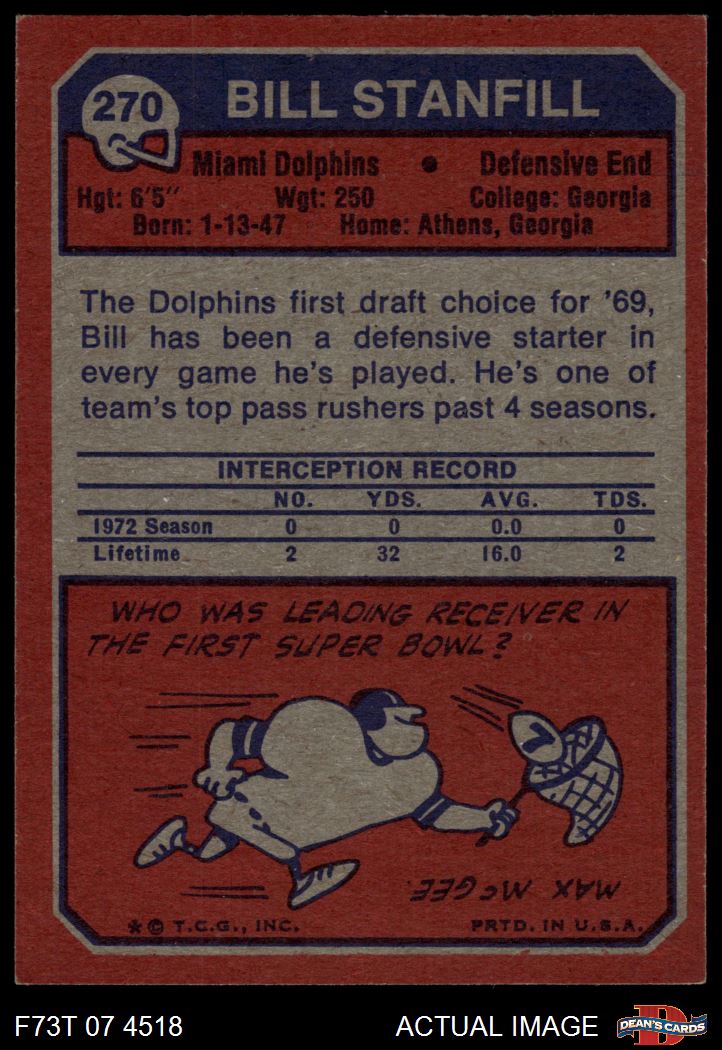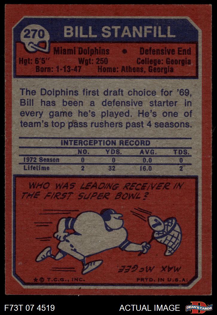 1973 Topps #270 Bill Stanfill