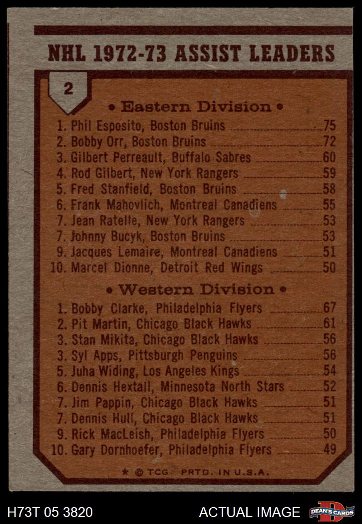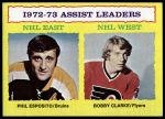 1973 Topps #2 - Phil Esposito / Bobby Clarke Assists Leaders 4 - VG/EX