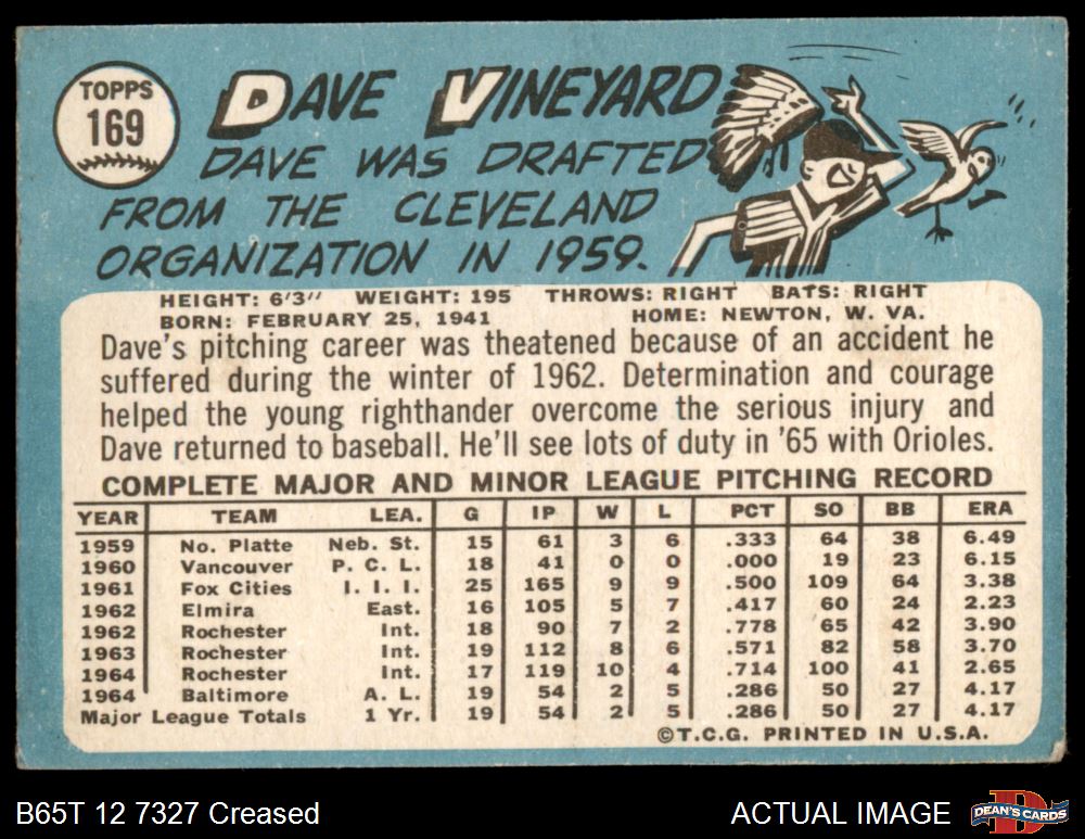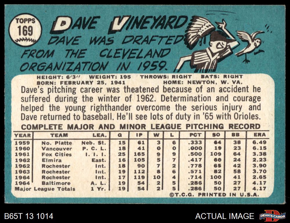 1965 Topps #169 Dave Vineyard 2 - GOOD