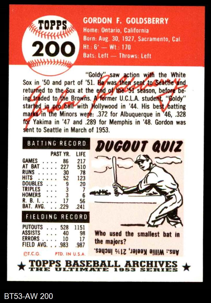 1953 Topps Archives #200 Gordon Goldsberry