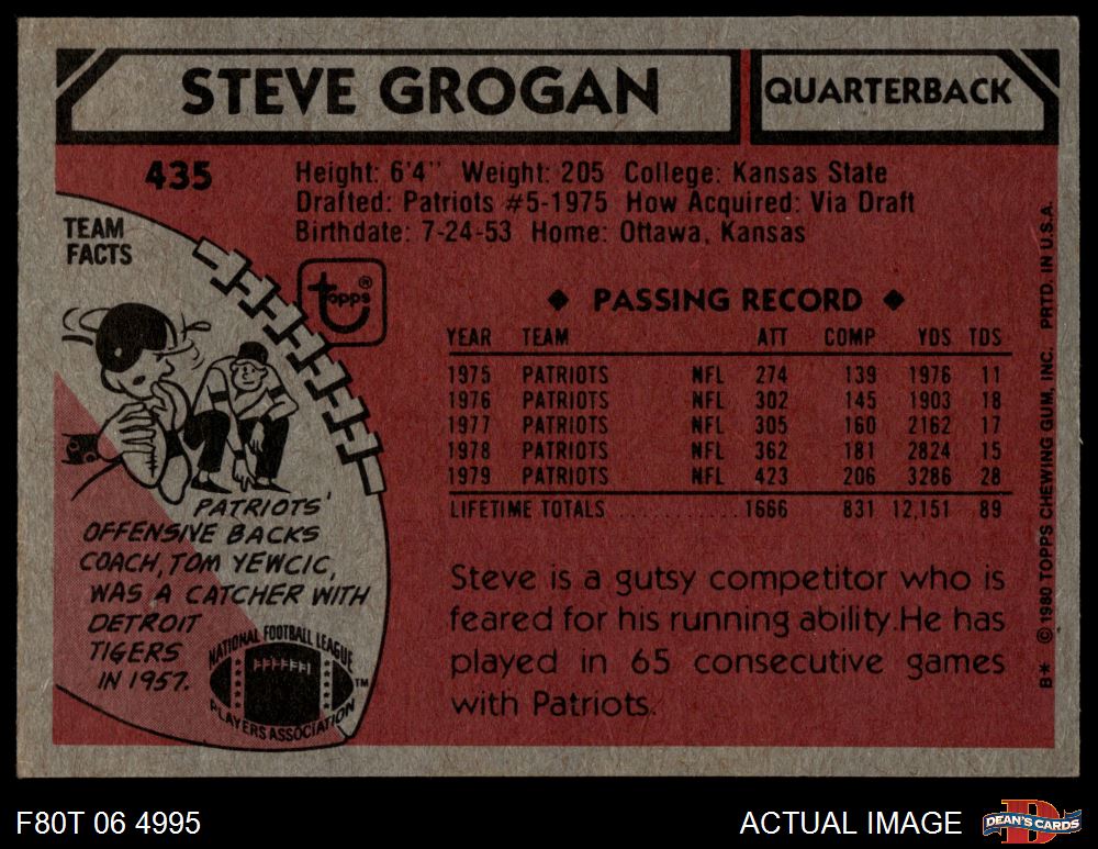1980 Topps #435 Steve Grogan