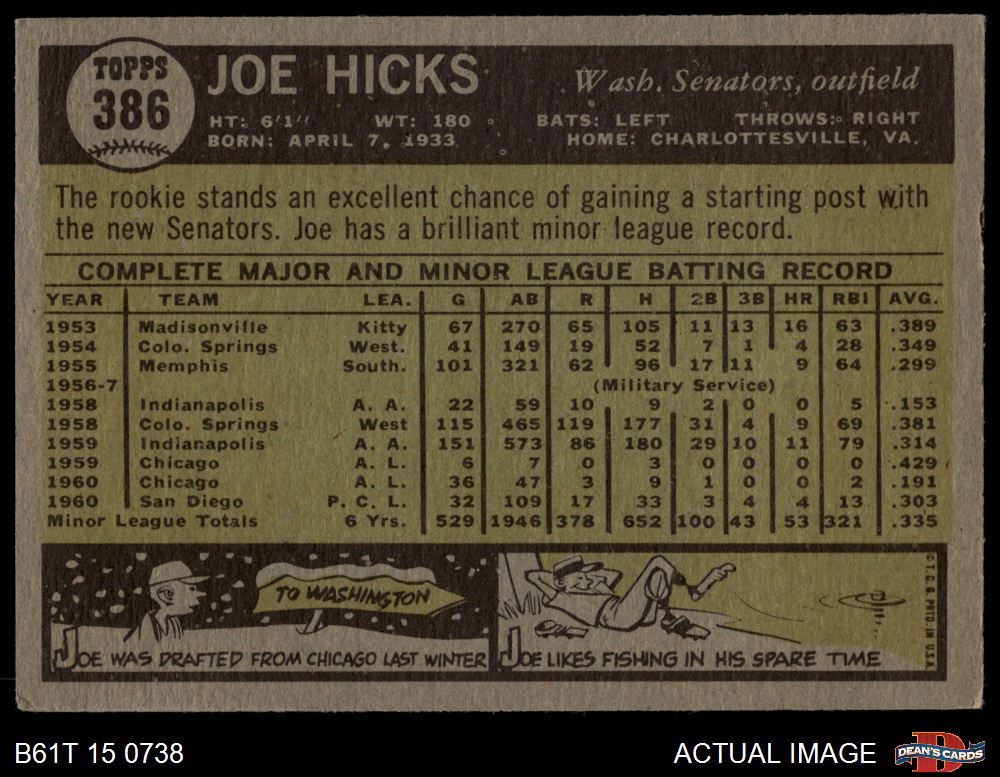 1961 Topps #386 Joe Hicks 4.5 - VG/EX+