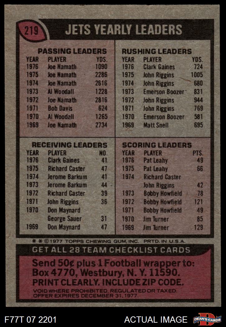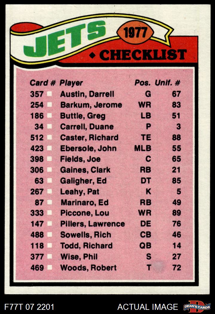 1977 Topps #219 Jets Team Checklist 5 - EX