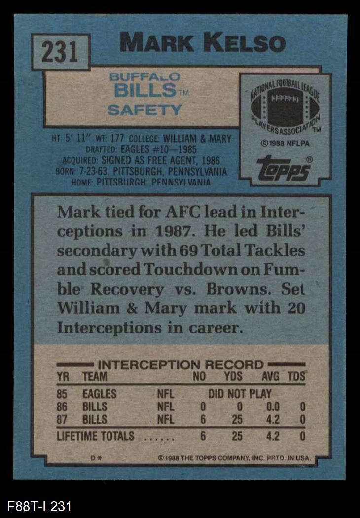 1988 Topps #231 Mark Kelso 8 - NM/MT