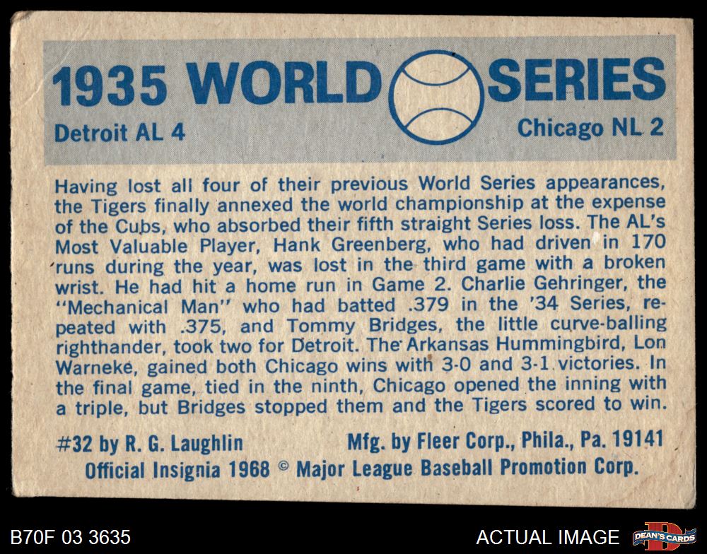 1970 Fleer World Series #32 - Charlie Gehringer 1935 Tigers vs. Cubs 3 - VG