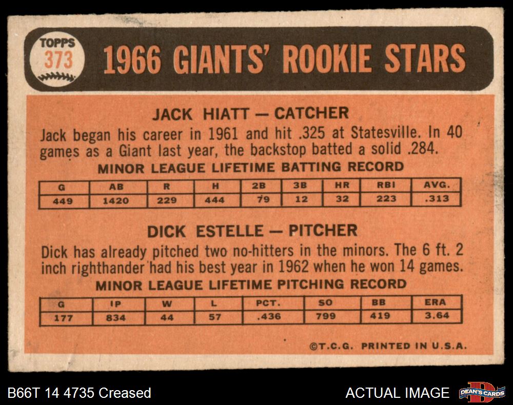 1966 Topps #373  -  Jack Hiatt / Dick Estelle Giants Rookies Front Thumbnail