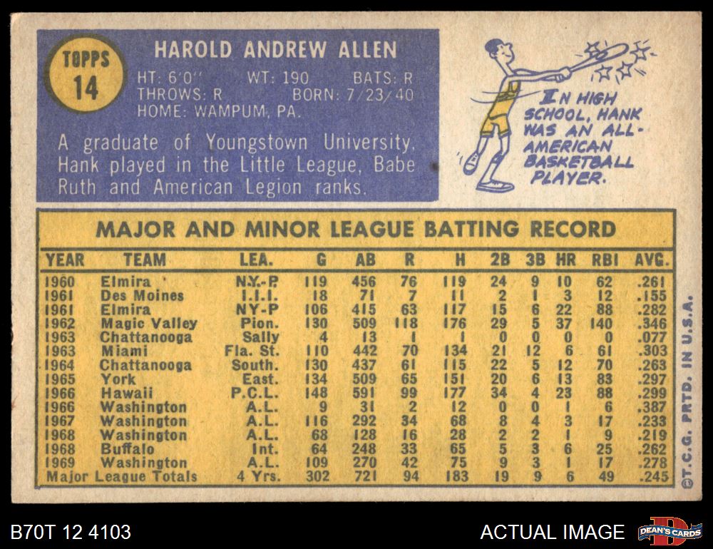 1970 Topps #14 Hank Allen 5 - EX