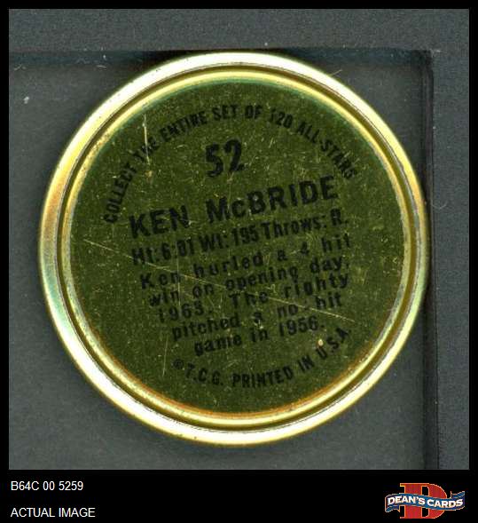 1964 Topps Coins #52 Ken McBride 6 - EX/MT
