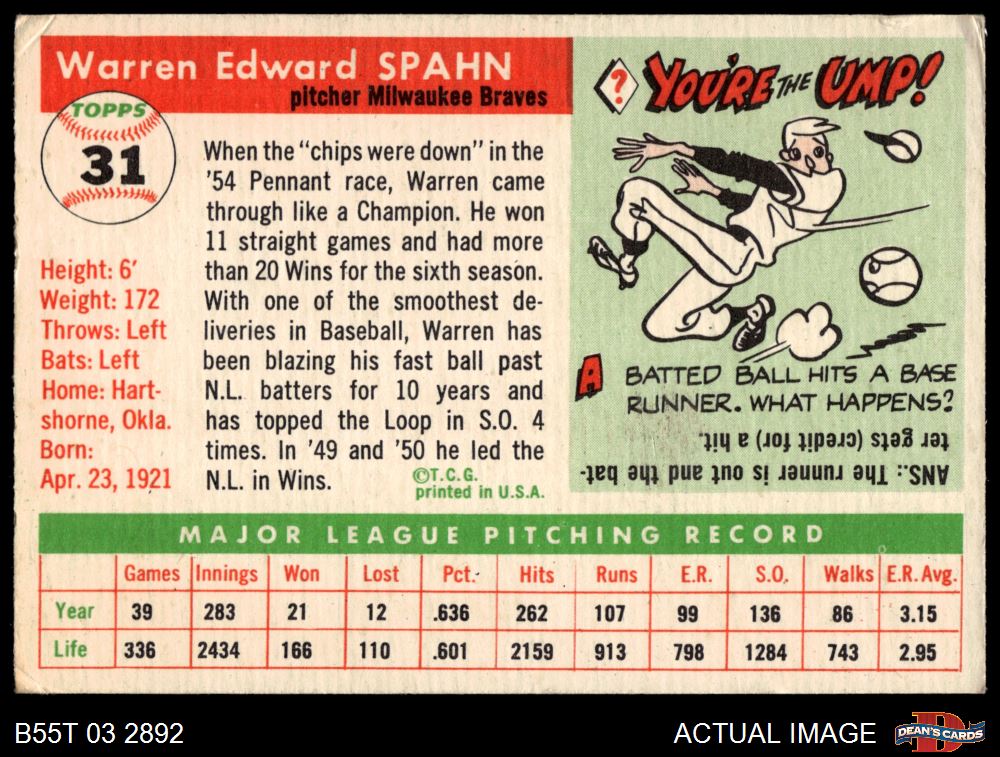 1955 Topps #31 Warren Spahn
