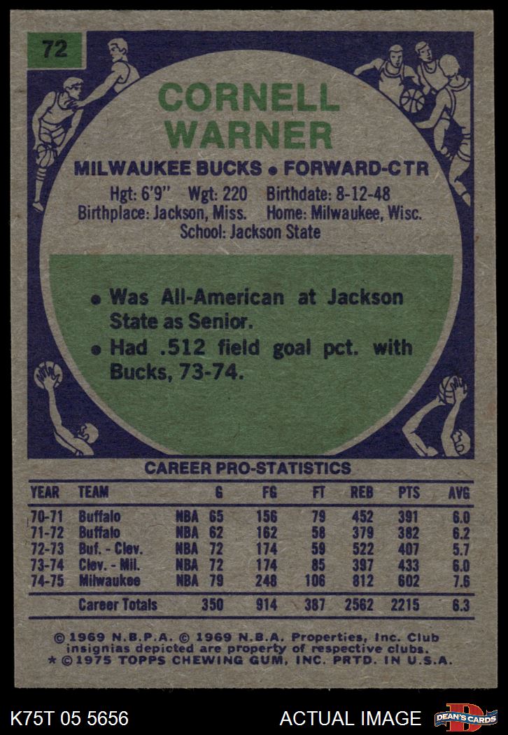 1975 Topps #72 Cornell Warner 7 - NM