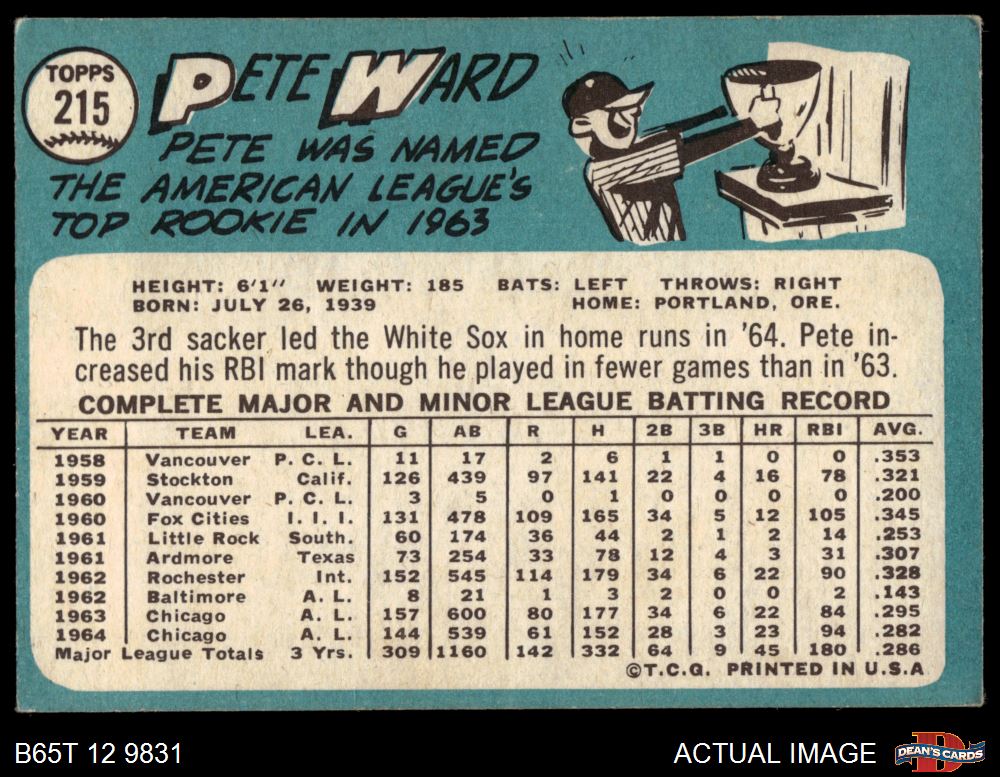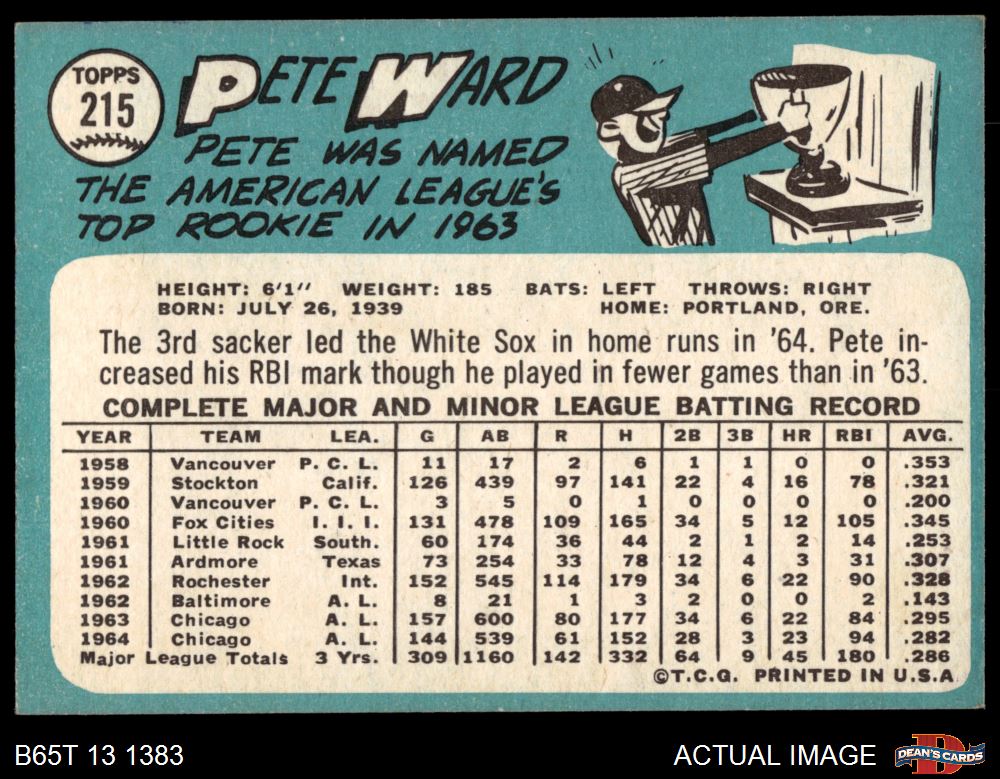 1965 Topps #215 Pete Ward 5 - EX