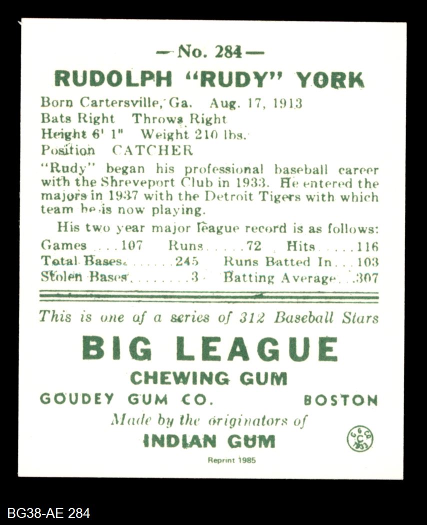 1938 Goudey Heads-Up Reprint #284 Rudy York