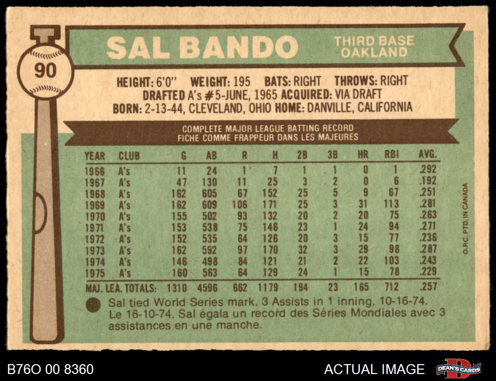 1976 O-Pee-Chee #90 Sal Bando 6.5 - EX/MT+