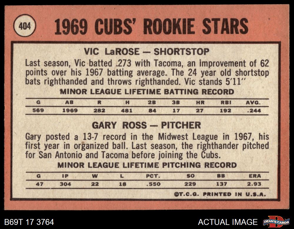 1969 Topps #404 - Gary Ross / Vic LaRose Cubs Rookies 4.5 - VG/EX+