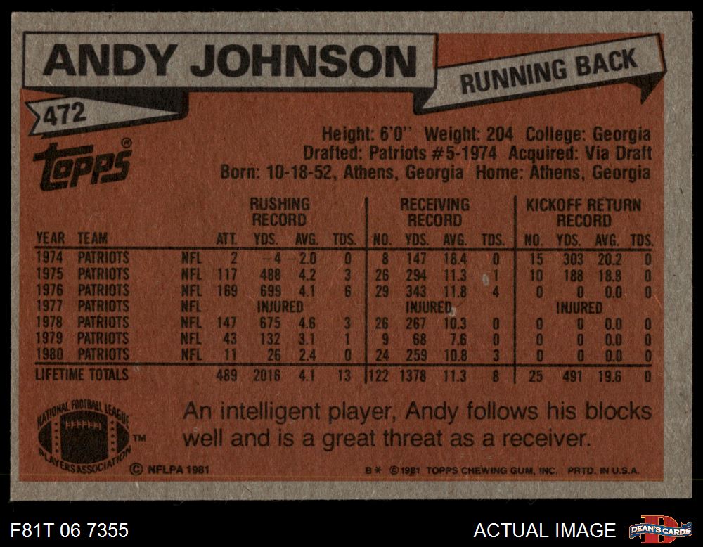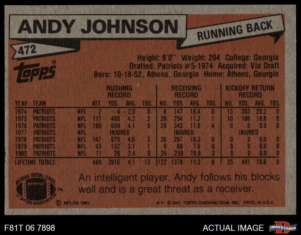 1981 Topps Football Cards (6,346 available)1981 Topps Patriots (400 available)