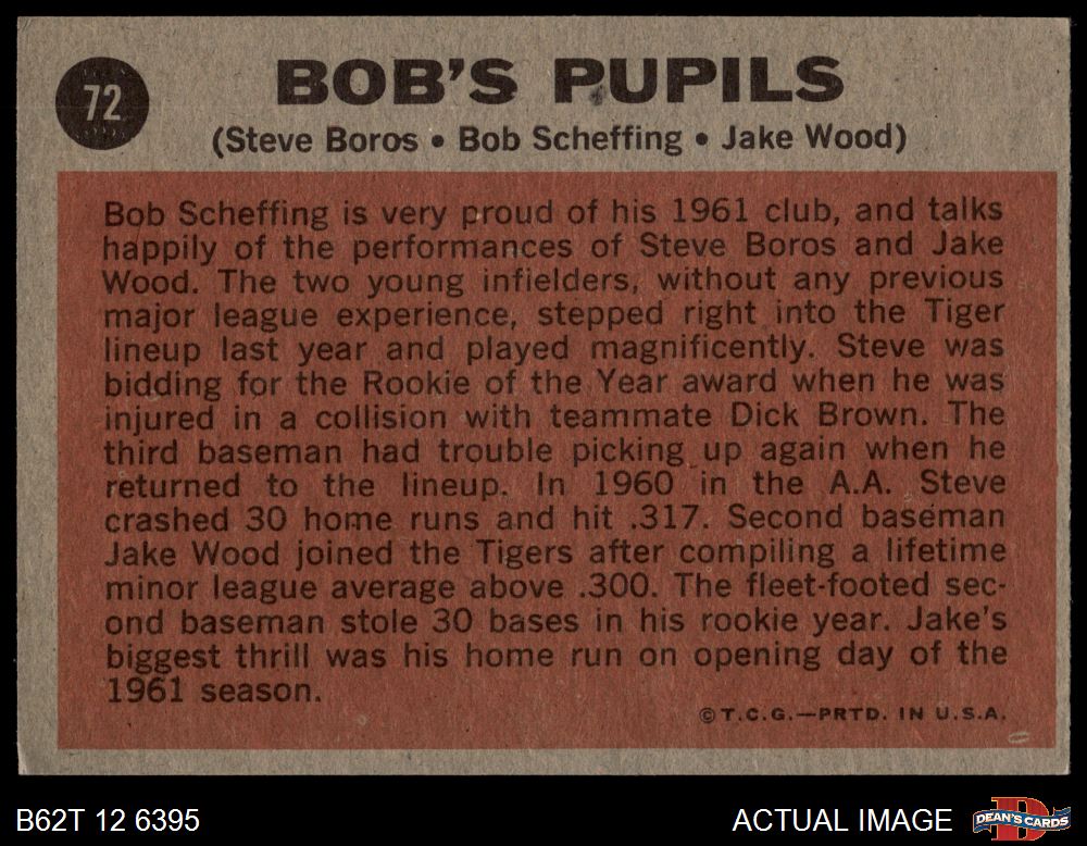 1962 Topps #72 - Steve Boros / Bob Scheffing / Jake Wood Bob's Pupils 2 - GOOD
