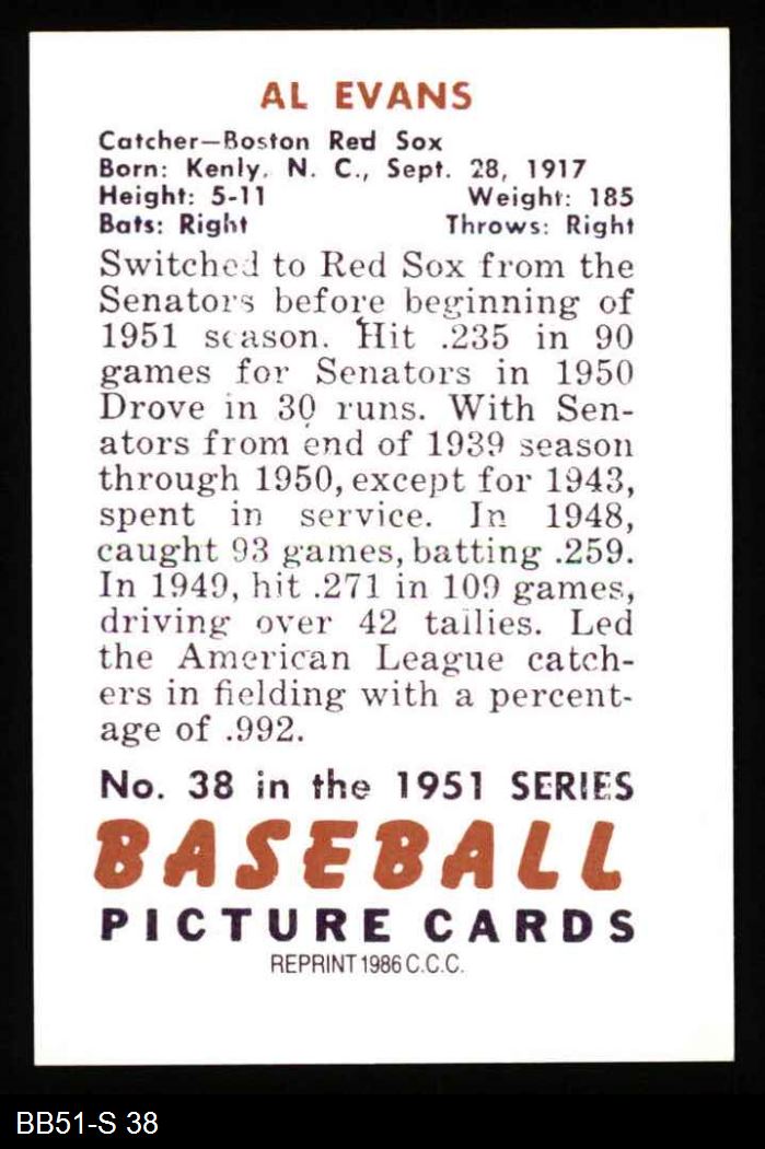 1951 Bowman REPRINT #38 Al Evans 8 - NM/MT